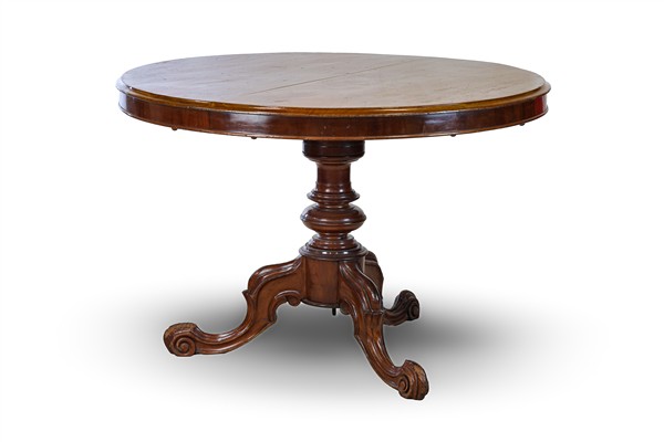 Lotto composto da tavolo in mogano massello e lastronato con piano circolare a