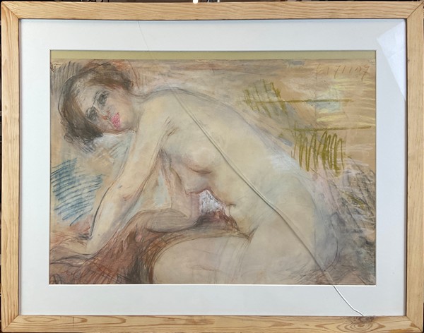 Donato Frisia "Nudo" tecnica mista su carta (cm 50x70) in cornice (difetti) Pr