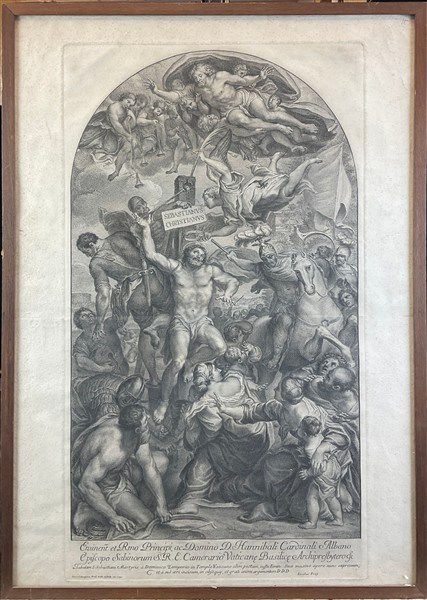 Incisione di J. Frey da invenzione di Domenichino raffigurante "Il martirio di san Sebastiano", 1737