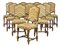 Gruppo di dieci sedie di forma sagomata con gambe tornite riunite da traversa,