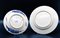 Lotto composto da tre piatti in porcellana dipinta in monocromia blu con decori