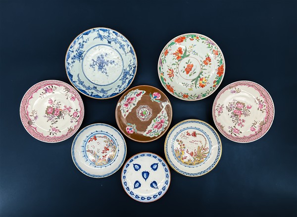 Manifatture differenti, secolo XVIII-XIX. Lotto composto da otto piattini in po