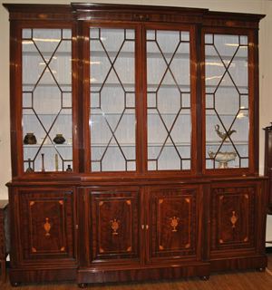 LIBRERIA Libreria in mogano con intarsi, Inghilterra 1860 circa H 270 260x50 cm