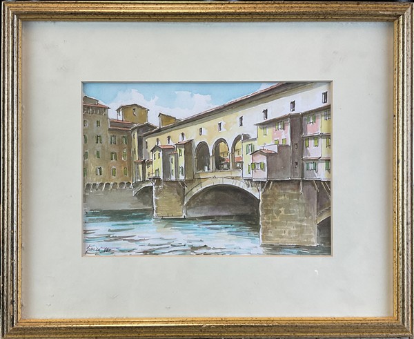 Ignoto del secolo XX "Ponte Vecchio a Firenze" acquerello su carta (cm 14x20)