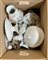 Cartone contenente diversi oggetti in ceramica policroma e porcellana per la ta