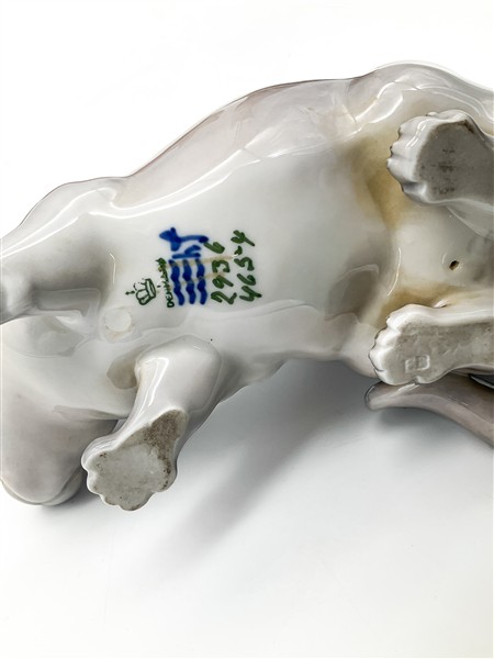 Manifatture differenti. Lotto composto da cinque figure diverse di animali in porcellana policroma (h. max cm 26) (difetti)