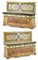 Coppia di panche in legno dipinto in policromia a finto marmo, fascia inferiore