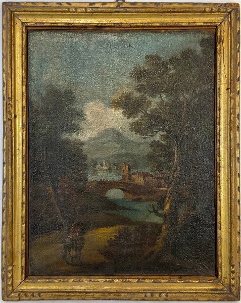 Lotto 1991 | Ignoto "Paesaggio boschivo" olio su tela (cm 48,5x36,5) in cornice (restauri e