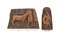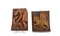 Gruppo di quattro formelle in legno intagliato con scene di genere a rilievo (cm max 34x22) iscritte e firmate al retro (difetti)