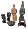 Lotto composto da una ciotola, un base in legno e quattro sculture etniche in m