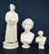 Lotto di tre sculture in biscuit raffiguranti Dante Alighieri (h cm 47), busto femminile dal classico (h cm 19) e una scultura inglese del secolo XIX raffigurante "May Queen", iscritta al verso (h cm 32) (lievi difetti)