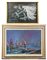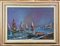 Lotto composto da un dipinto ad olio su tela raffigurante marina con barche fir