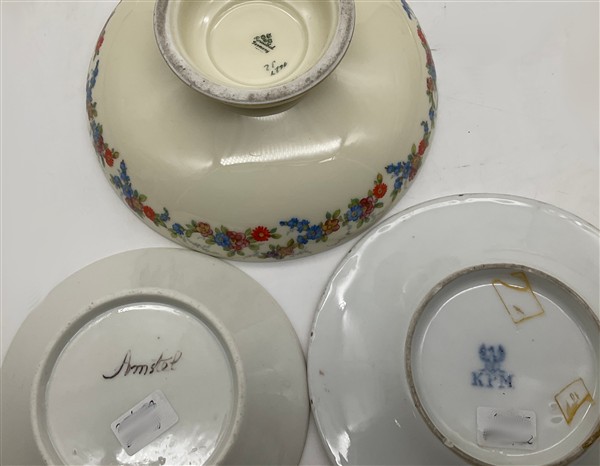 Manifatture diverse. Lotto composto da tre diversi piattini in porcellana con p