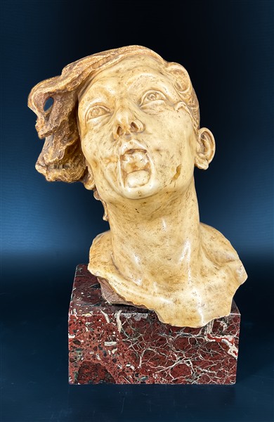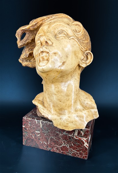 Edmondo Furlan "Testa virile" scultura in marmo su base in marmo (cm tot 45) f