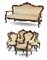 Fornitura da salotto in legno intagliato composta da divano a tre posti, coppia