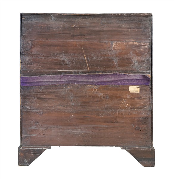 Ribalta impiallacciata in mogano, fronte a tre cassetti e calatoia celante quat