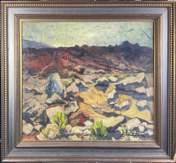 Lotto composto da un dipinto ad olio su tela di Paolo Pratella raffigurante "Lave sul Vesuvio" (cm 70x75), firmato in basso a destra e un dipinto ad olio su masonite raffigurante paesaggio firmato Fioretti (cm 50x60)