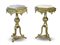 Coppia di tavolini in ottone di forma esagonale con sostegni tripodi e piedi fe