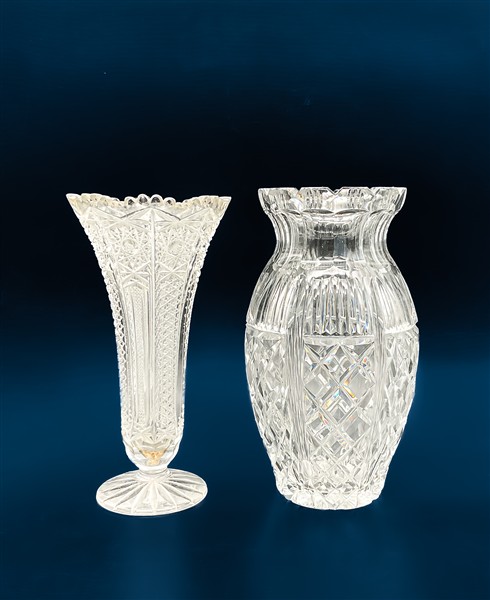 Lotto composto da due cestini e due diversi vasi in vetro molato (h max cm 26) (difetti)