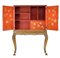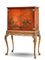 Cabinet in legno laccato di gusto orientale a pagode e fiori su fondo rosso, ga