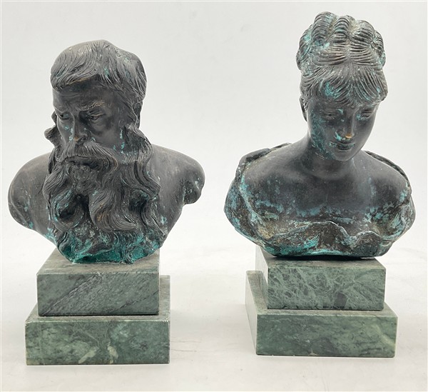 Da Vincenzo Gemito Coppia di busti in bronzo poggianti su base in marmo (cm max