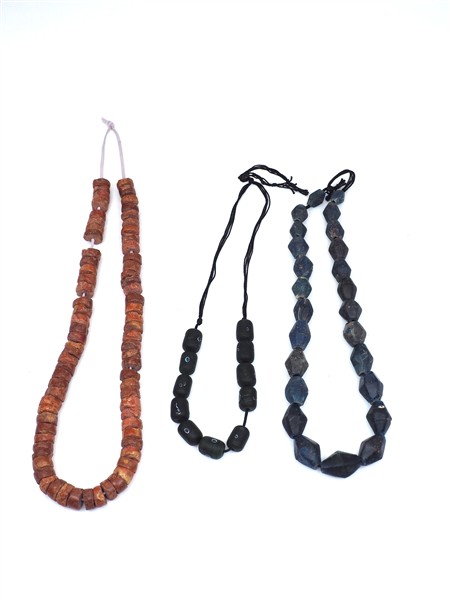 Lotto in argento, metallo bianco, rame, pietre dure, imitazioni varie e paste vitree composto da tredici collane, due bracciali alla schiava, una fibula e orecchini con spilla e un pendente, (complessivi lordi g 3.888 circa) (difetti e mancanze)
