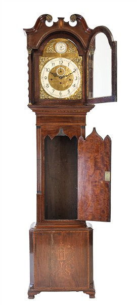 Lotto 2161 | G. Feather Keighley. Orologio cassalunga con cassa in mogano intarsiata e filet