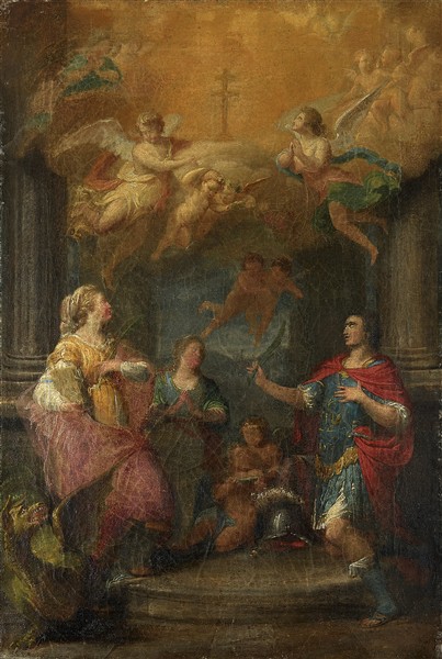 Saint Margaret of Cortona, Saint Valerian, and Angels in Adoration of the Cross of Lorraine