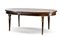 Tavolo ovale allungabile in noce con gambe a obelisco rovesciato decorate all'a