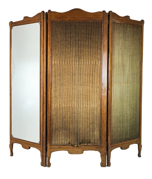 Paravento in legno a tre ante specchiate (h.cm 187, L. cm 65 per singola anta) (difetti)