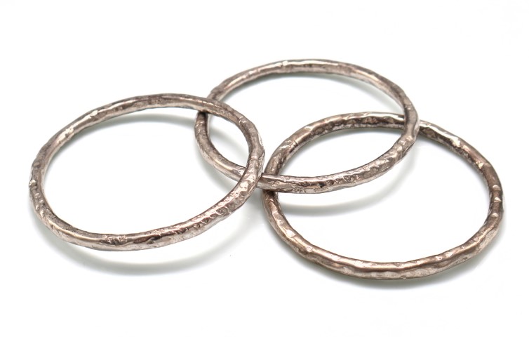 Lotto di tre bracciali rigidi in argento 925 martellato.
