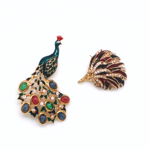 Di cui un Pavone in metallo dorato smalti e cabochon colorati e un riccio in metallo dorato smalti colorati e strass (1 strass mancante).