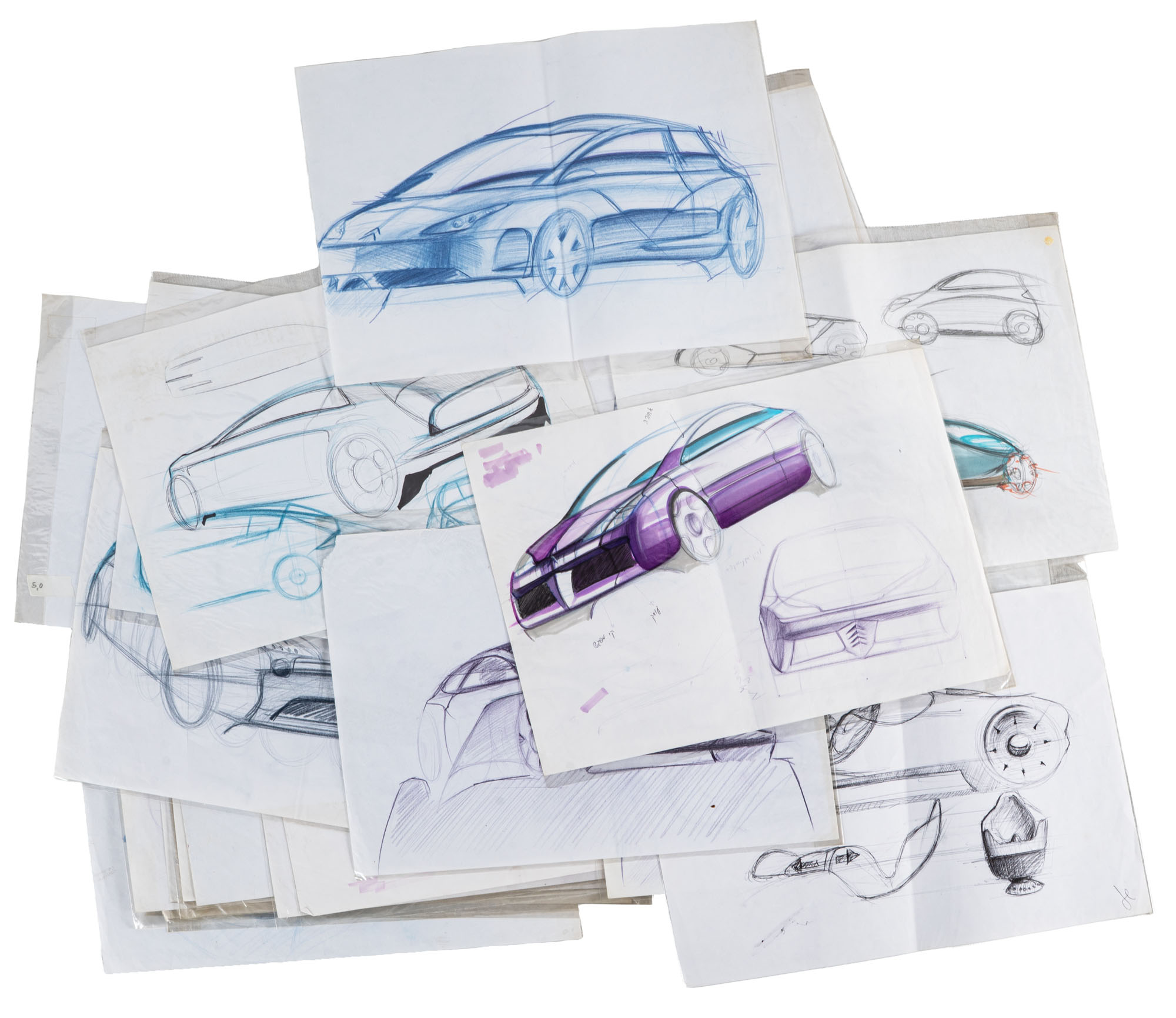 26 Schizzi professionali di carrozzeria d'autoAnni '80Cm. 42 x 29,7Condizioni ottime