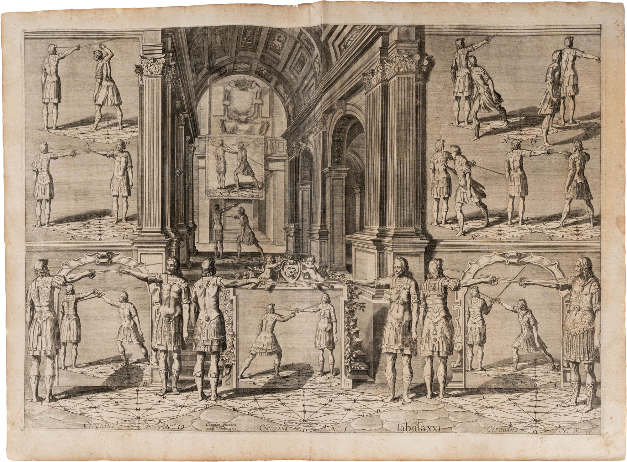 Egbert Van Panderen (Haarlem, 1590 - Anversa, 1637) - 10 Tavole da 'Academie de l'Espée'BulinoCm. 47,5 x 69 (lastra)Cm. 54 x 75 (foglio)