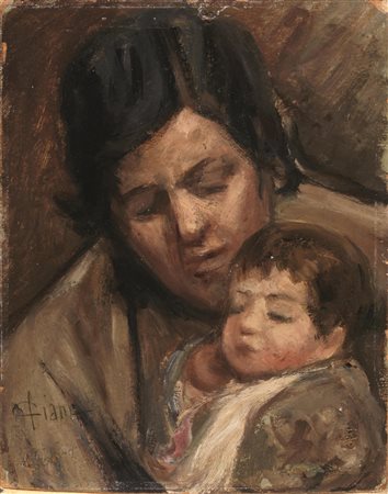 Cesare Ciani (Firenze 1854 - 1925) MATERNITA' olio su cartoncino, cm...