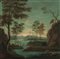 Scuola Francese del sec. XIX PAESAGGIO LACUSTRE CON PESCATORI E VIANDANTI...