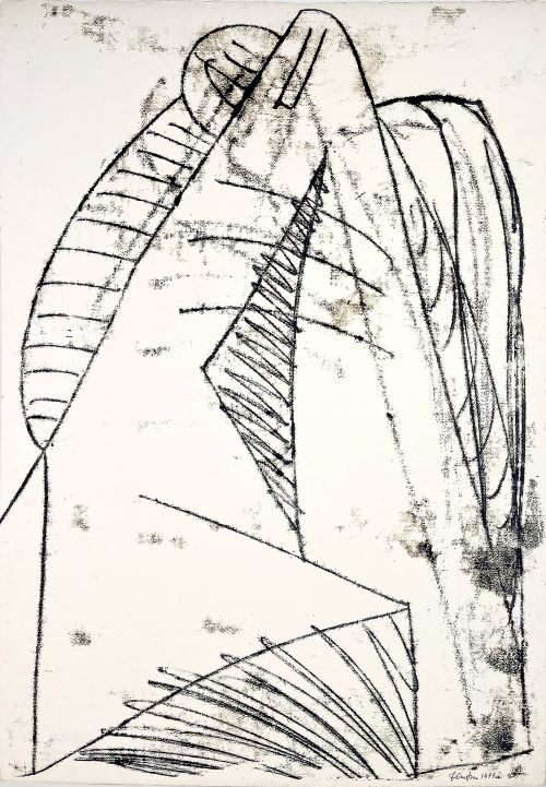 Monotipo, disegno impresso a olio su carta, cm 70×100, firma e anno in basso a destra