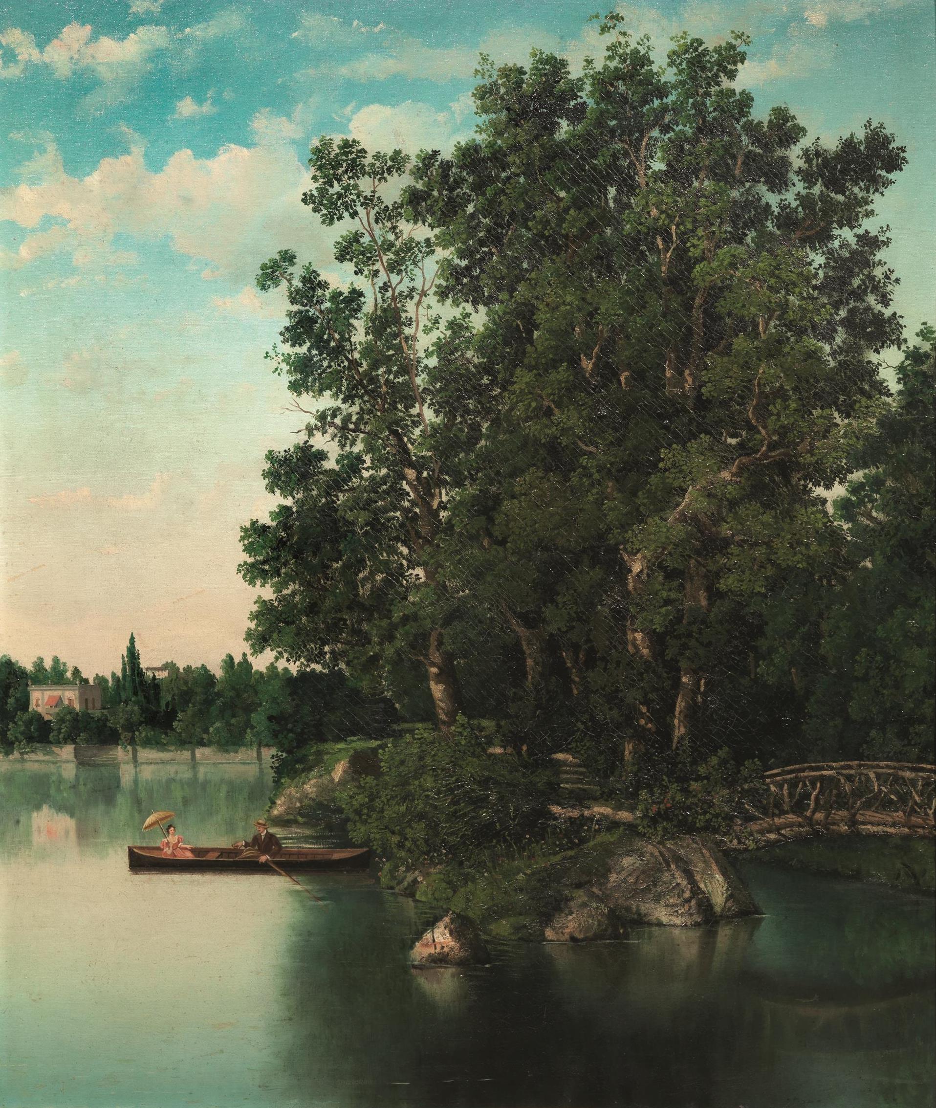 Scuola Francese del sec. XIX GITA IN BARCA olio su tela, cm 102x89