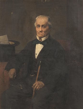 Domenico Induno (Milano 1815 - Milano 1878) RITRATTO DI VECCHIO CON BASTONE...