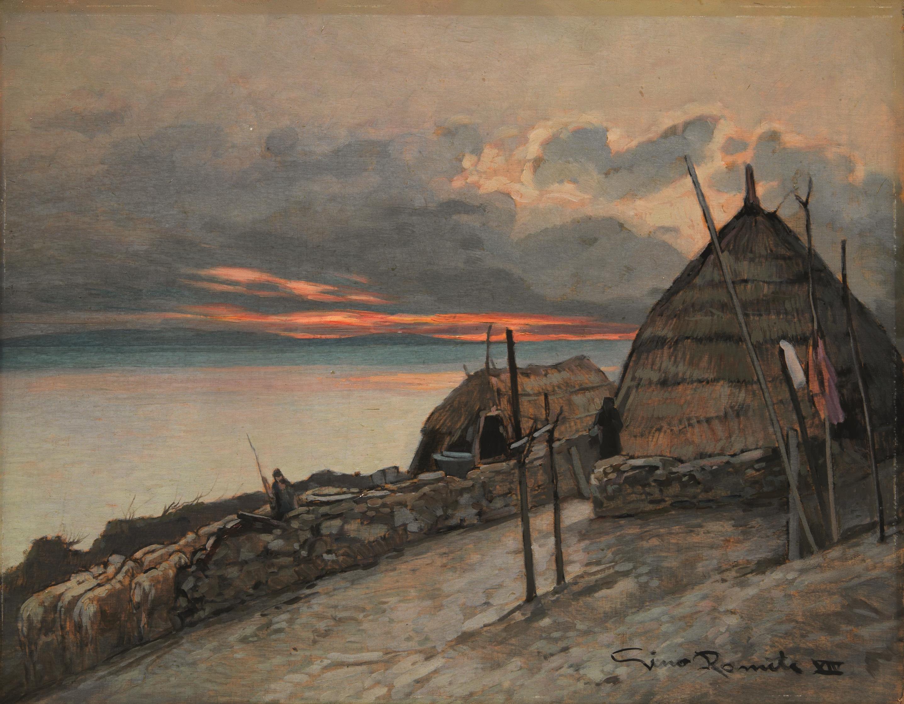 Gino Romiti (Livorno 1881 - 1967) PESCATORE IN RIVA AL MARE olio su...