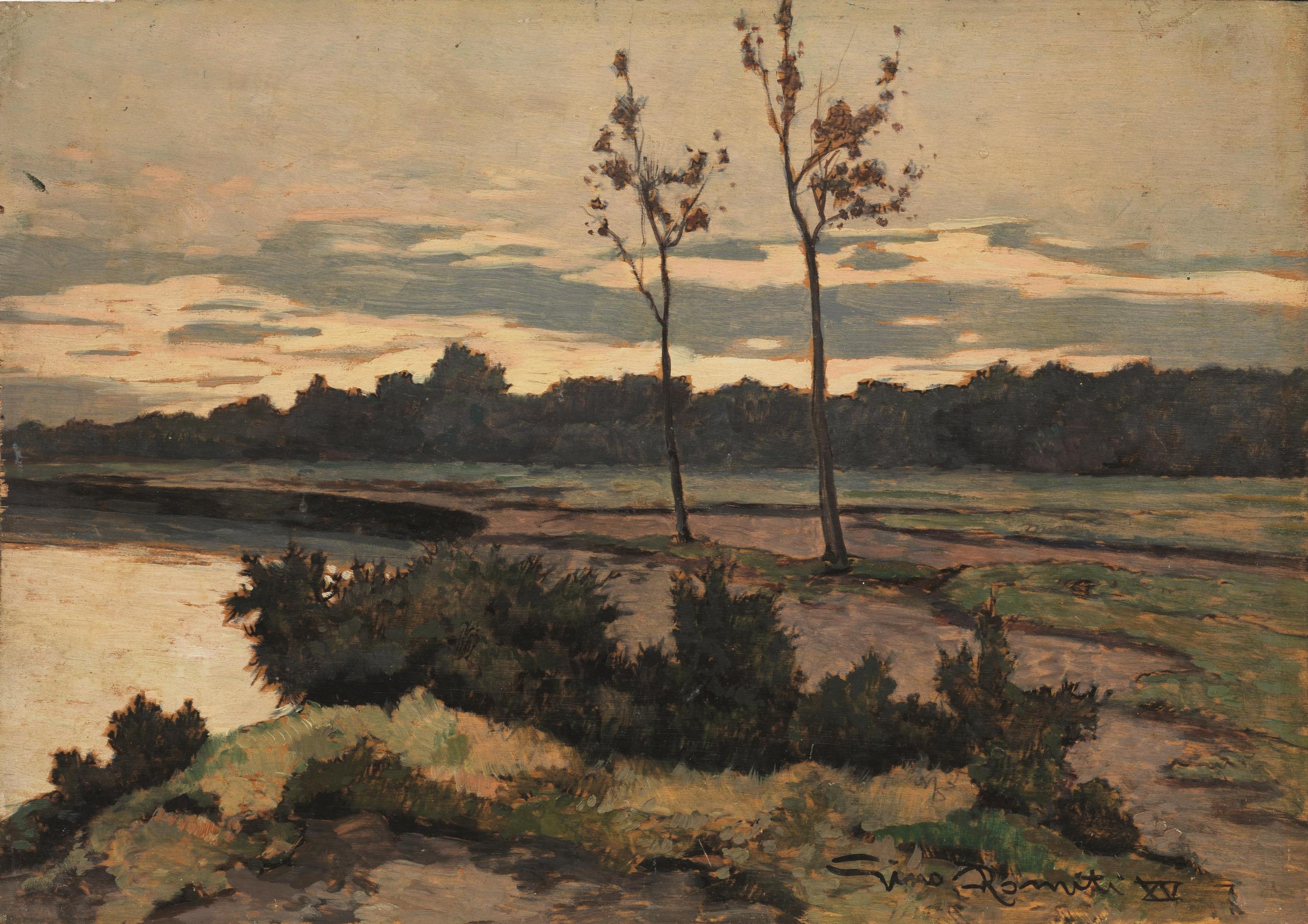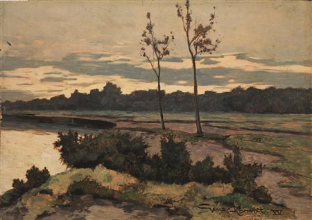 Gino Romiti (Livorno 1881 - 1967) SCORCIO DI PAESAGGIO olio su compensato, cm...