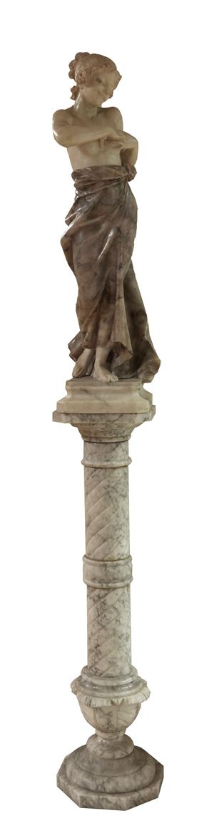 SCULTURA Scultura in alabastro con base in marmo, Francia fine XIX secolo H 90 cm