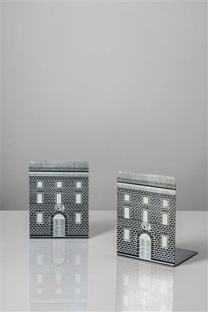 Piero Fornasetti (Milano 10/11/1913 - Milano 09/10/1988) - Coppia di fermalibri, decoro Architettura (negativo) , 1960 circa