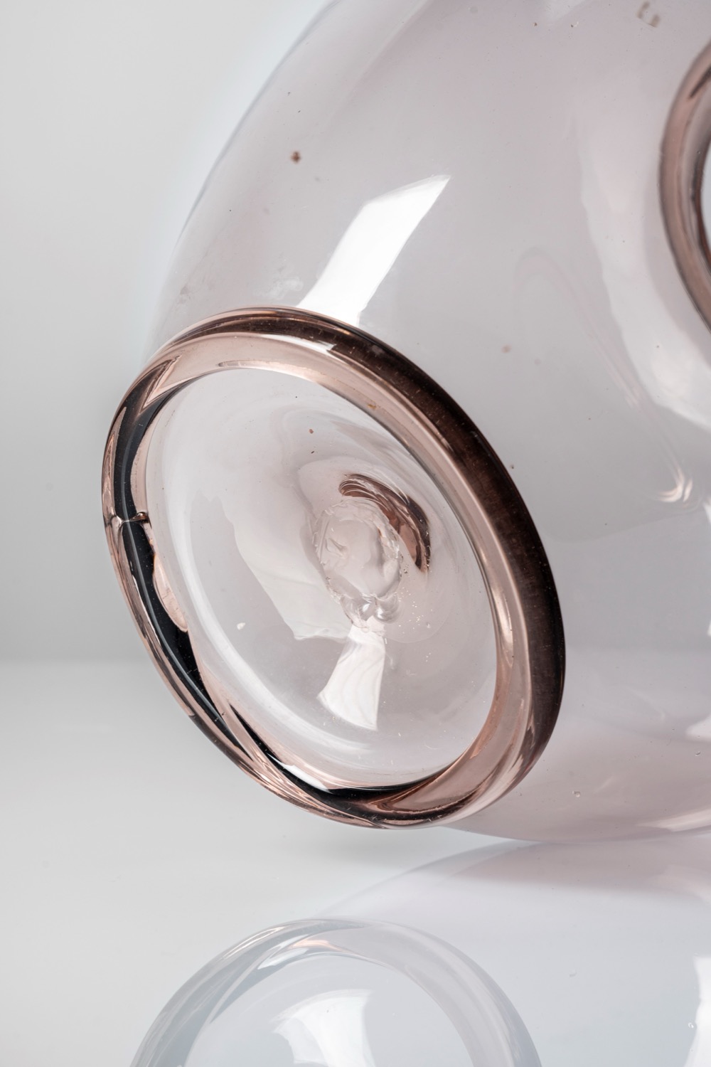 Grande vaso in vetro soffiato ametista con piede e bocca applicati