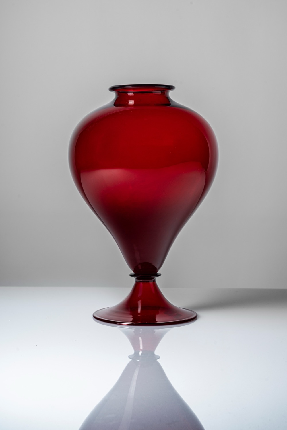 Grande vaso in vetro soffiato rosso rubino sfumato