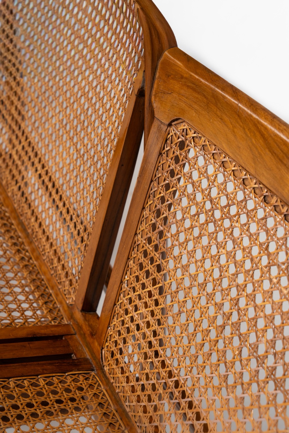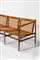 Raro sofa a tre posti con struttura in legno massello, schienale e seduta in paglia di Vienna