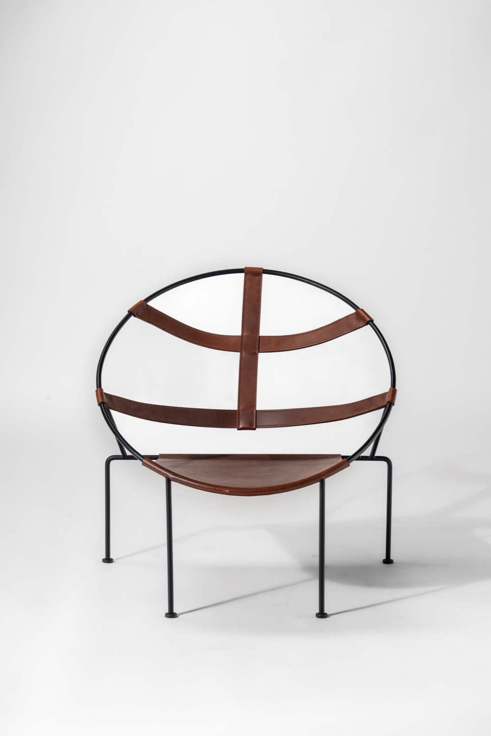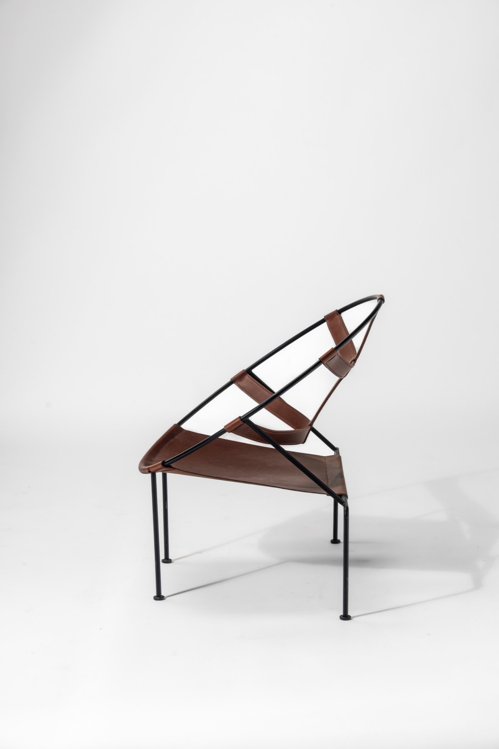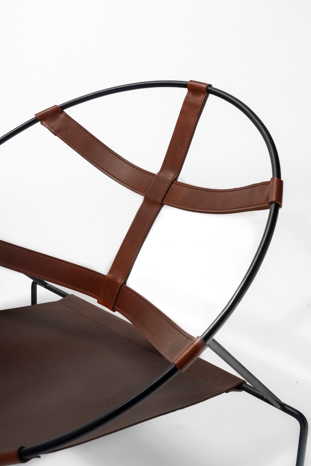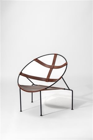 Poltrona modello 'FDC1' con struttura in metallo curvato verniciato, seduta e schienale in pelle
