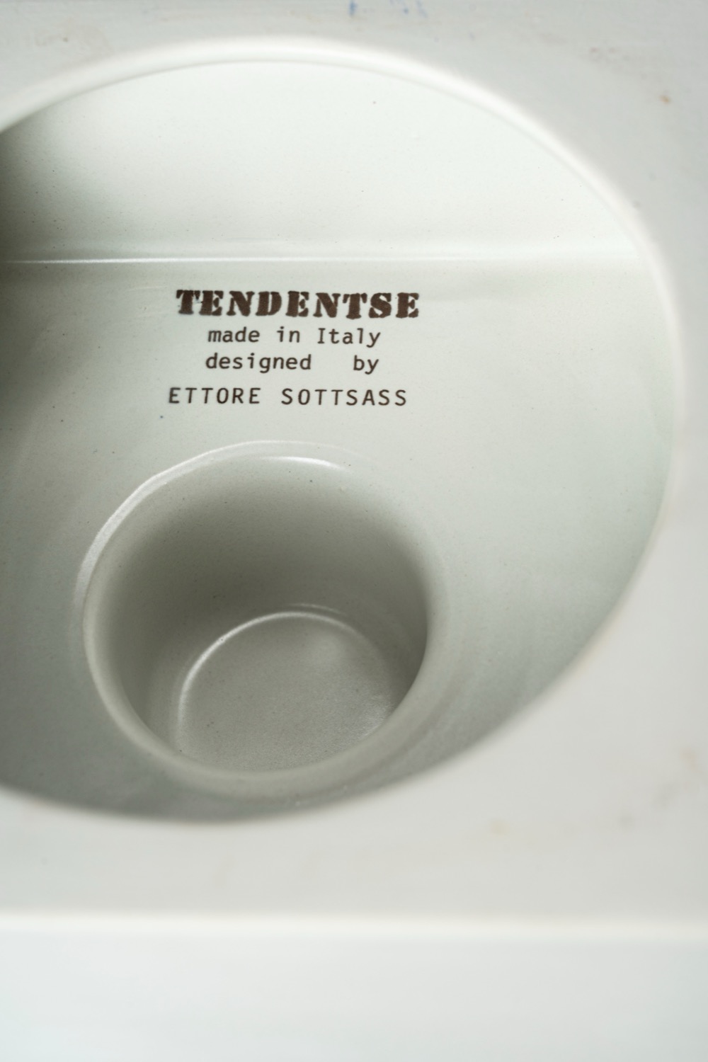 firma TENDENTSE / MADE IN ITALY / DESIGNED BY / ETTORE SOTTSASS sotto la base
