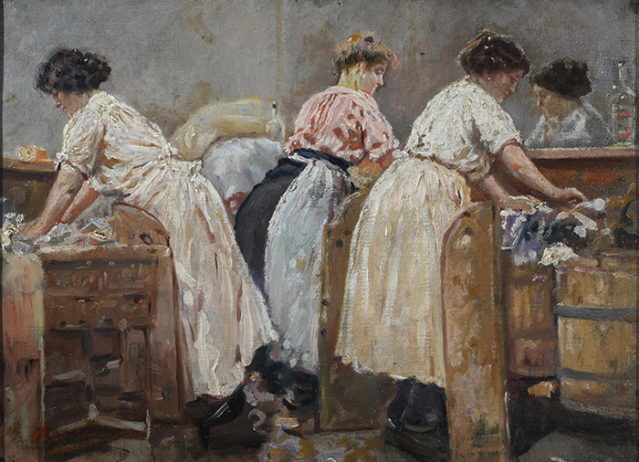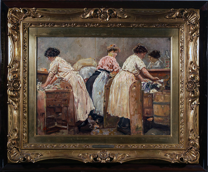 Ragione Raffaele (Napoli 1851 - 1925) Le lavandaie olio su cartone 33x44 firmato in basso a sinistra: Ragione Bibliografia: P.L. Di Giacomo – D. Di Giacomo, Raffaele Ragione (1851- 1925) impressionista napoletano, Pescara 2007, tav. XXIX p. 81