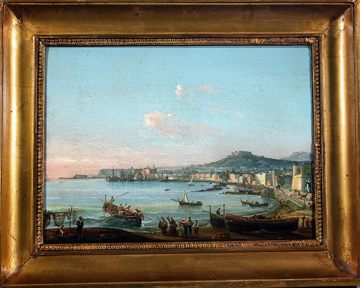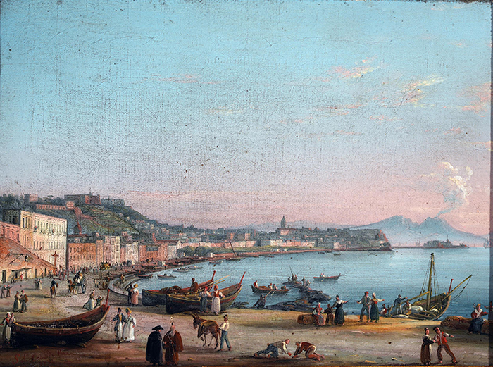 Candido Salvatore (attivo 1823-1869) a) Mergellina olio su tela, cm 24x33 firmato datato e iscritto in basso a sinistra: S. Candido 1834 Pinxit b) La Marinella olio su tela, cm 24x33